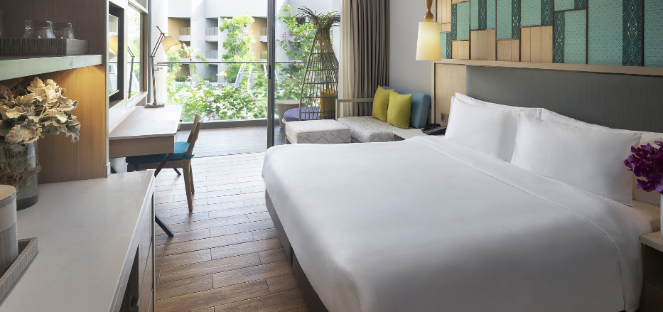 宽敞、通风且充满自然光的环境,白色、木材和靛蓝交织而成的热带色调,加上可欣赏宜人花园景致的落地窗。享受香甜美好的睡眠之后,在您的私人阳台上品味一杯香醇的清晨咖啡,然后出发探索美丽新世界。