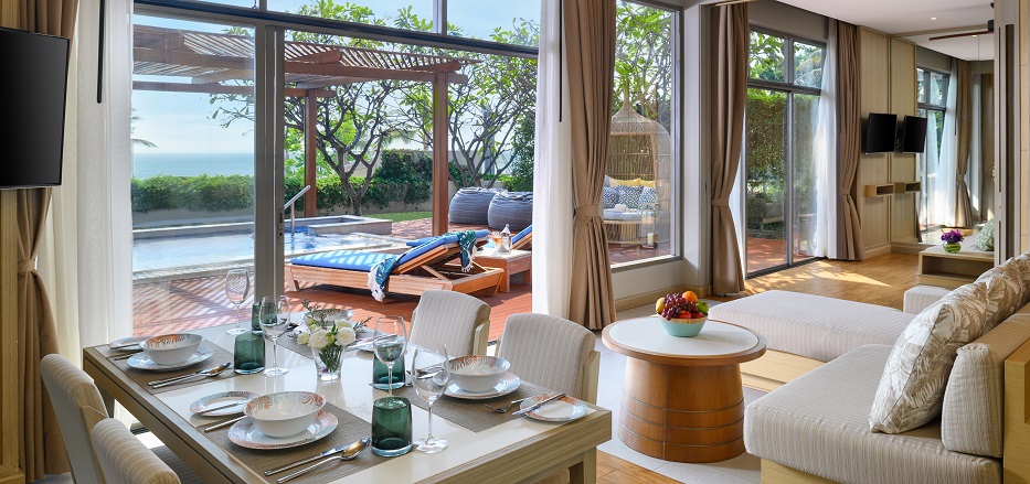 简直是欣赏美景再好不过的方式了。海景别墅拥有超大空间,足以开一场狂欢派对,设有私人游泳池和带躺椅与休闲椅的日光甲板。只需轻轻一跳便能从泳池跃入大海。在您的起居室或者海风的萦绕下享用晚餐和饮料。